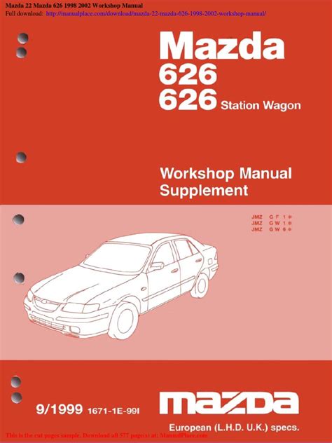 Read Online mazda 626 1998 2002 workshop manual Paperback
